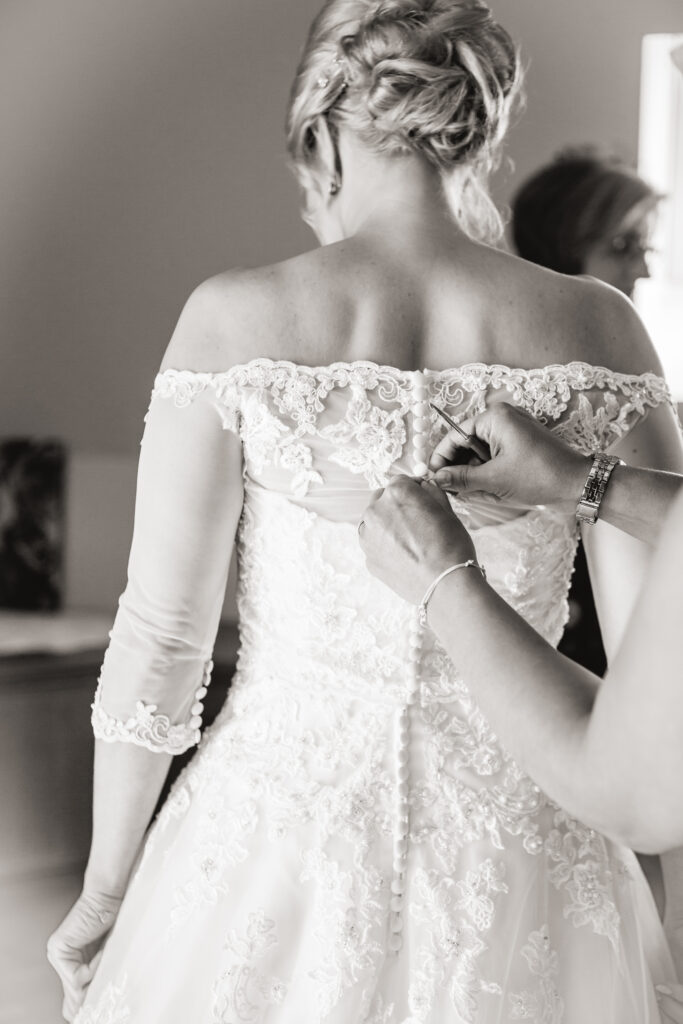Ideale Orte um sich fertig zu machen sind natürlich aus fotografischer Sicht helle, schlichte Hotelzimmer ohne viel Krimskrams. Aber dies ist nicht wirklich essentiell, ein schönes helles Zimmer zu Hause, oder wie hier bei den Eltern tut es auch. Im letzten geht es um Emotion und darum diesen besonderen Moment, dieses knistern festzuhalten.