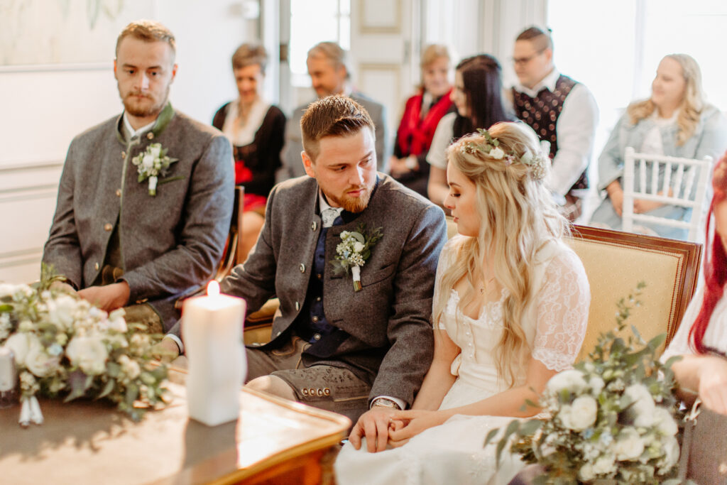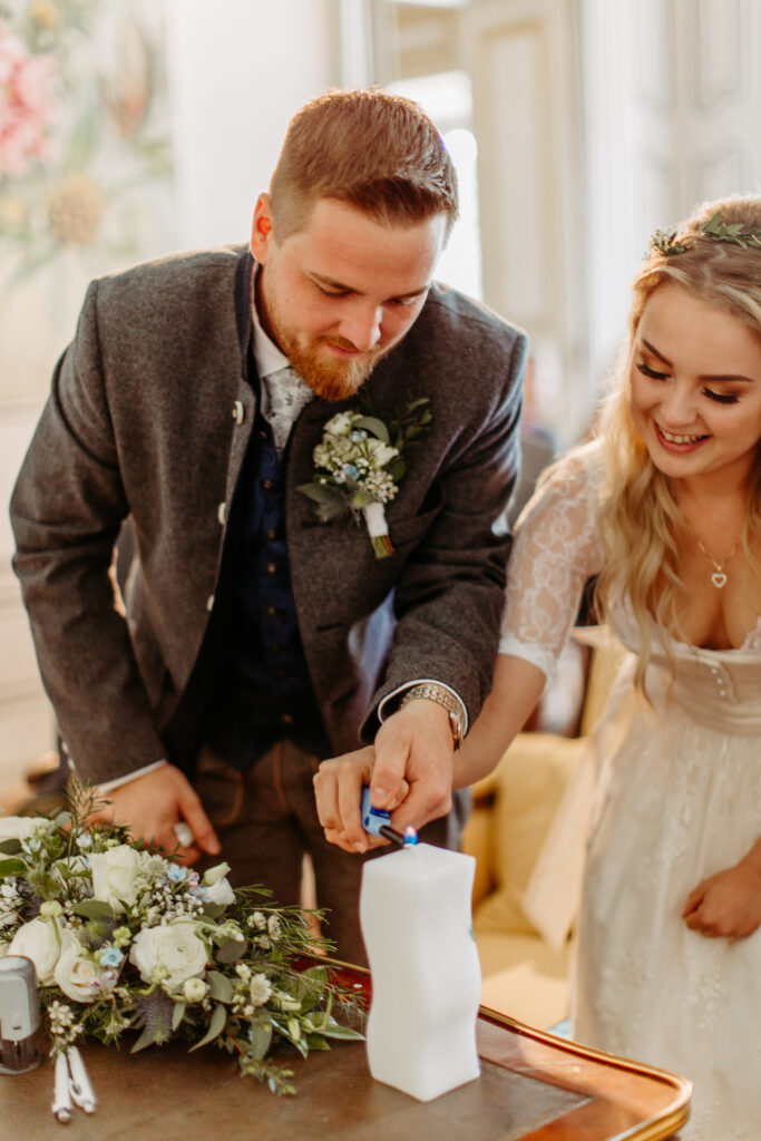 Kleine romantische Hochzeit im alten Schloss